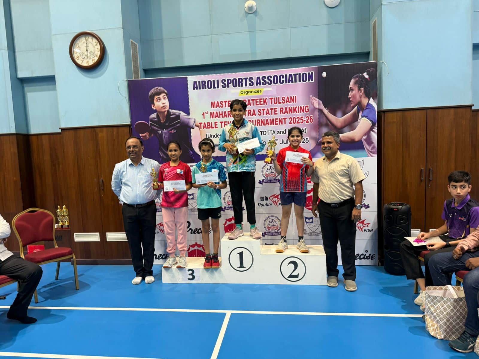 Aahana Godbole from std 5 has won silver medal in girls under 11 at 1st Maharashtra state ranking table tennis tournament.