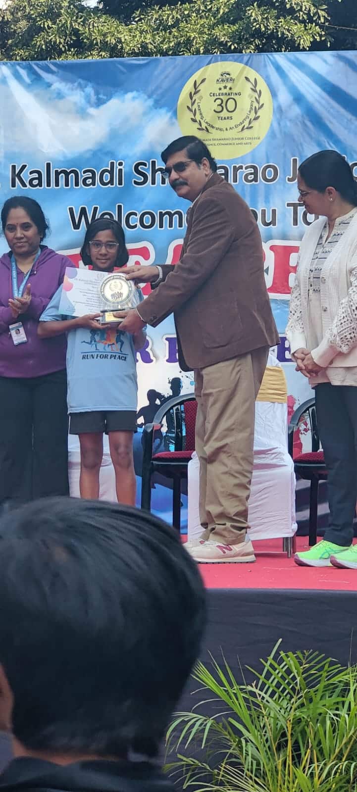 Rama Deshmukh from grade 6 secured third place in peace-a- thon….marathon organised by Kalmadi Junior College
