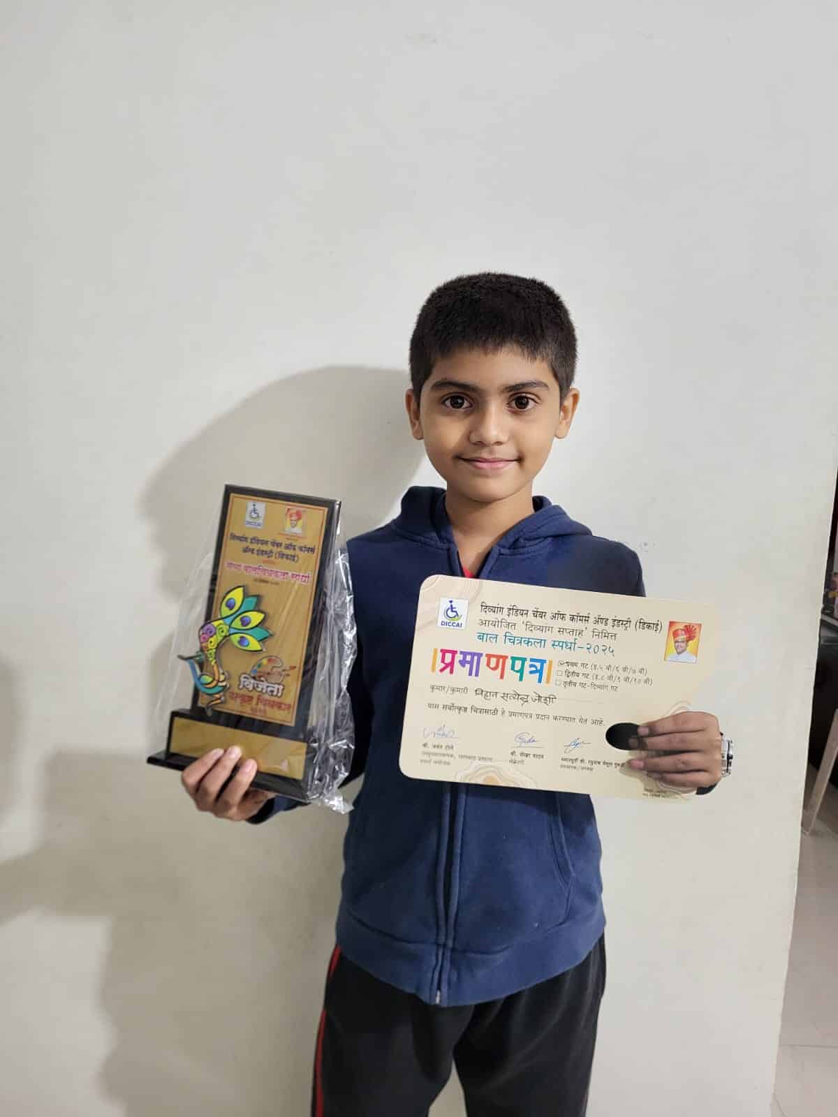 Vihan Joshi from grade 6 won first prize in Drawing Competition arranged by Divyang Indian Chamber of Commerce & Industry DICCAI on occasion of “Divyang Week”.
