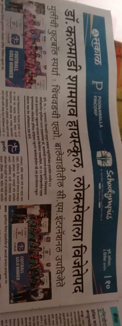 Under 14 girls Football – won first place in Sakal schoolympics.