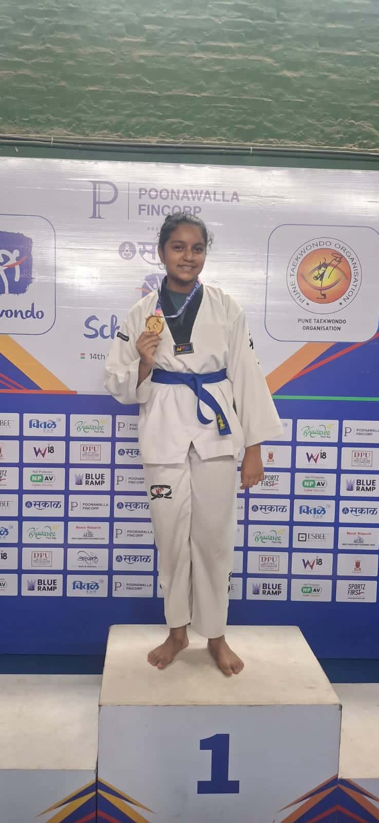 Veera Dalavi from grade 5 won Gold🥇 medal in Taekwondo (above 41kg category) in Schoolympics.