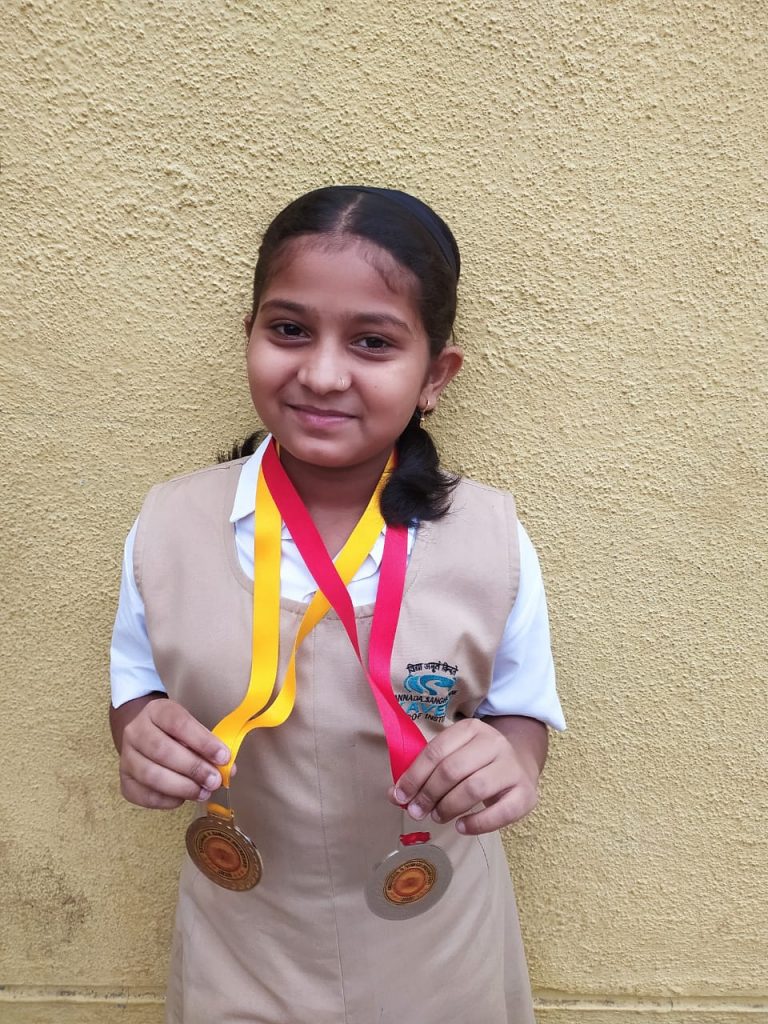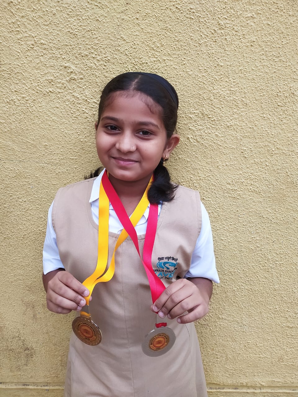 Anvi Bhandalkar 5F won Gold and Silver medal in under 11 category in Gatka (ढाल तलवार खेळ).