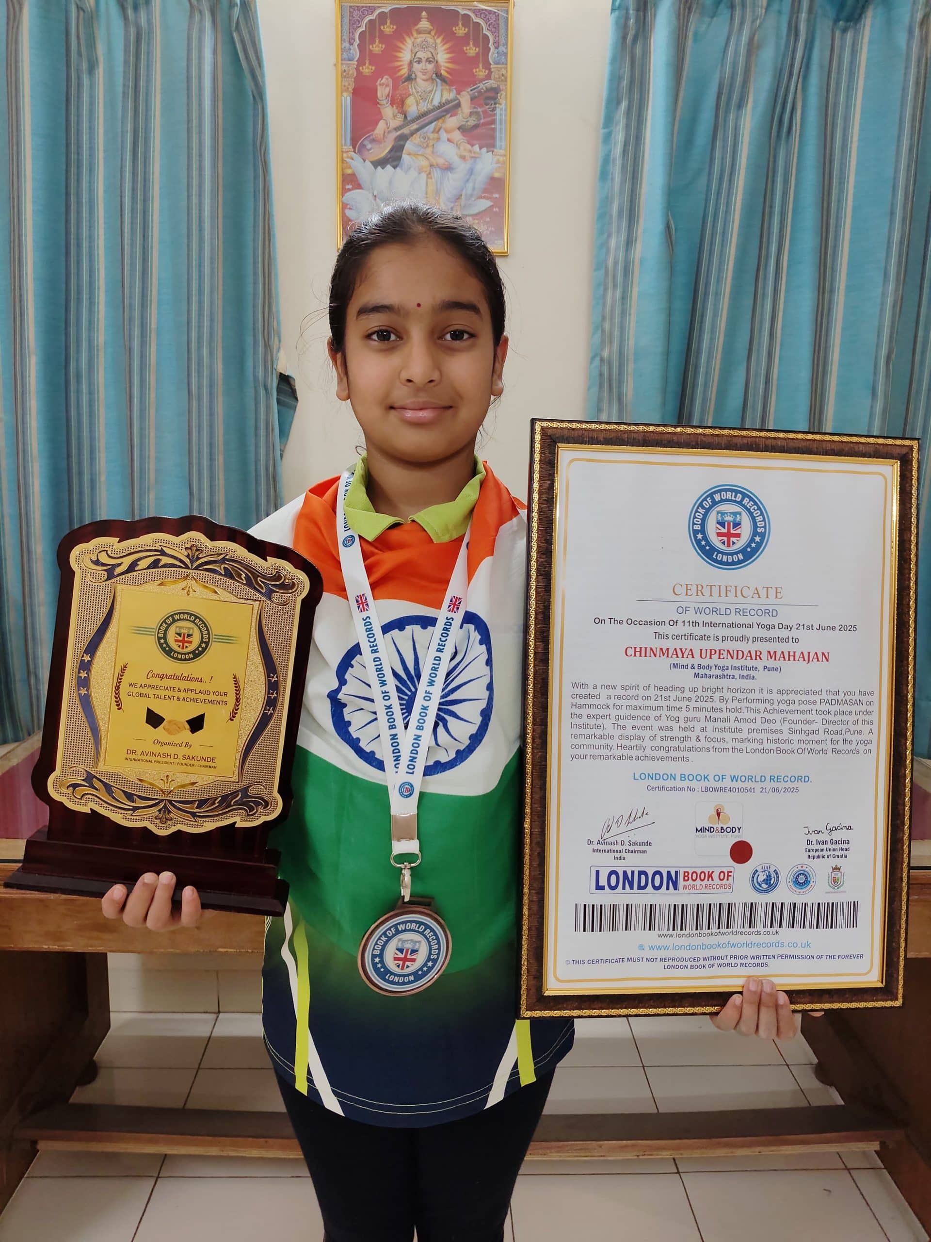 Chinmaya Upendra Mahajan from grade 6 created history in the world of hammock yoga by gracefully holding the lotus pose for a remarkable 5 minutes, earning her a place in the prestigious London Book of World Records. A very first girl from India to achieve this extraordinary milestone, bringing honor and glory to our nation.