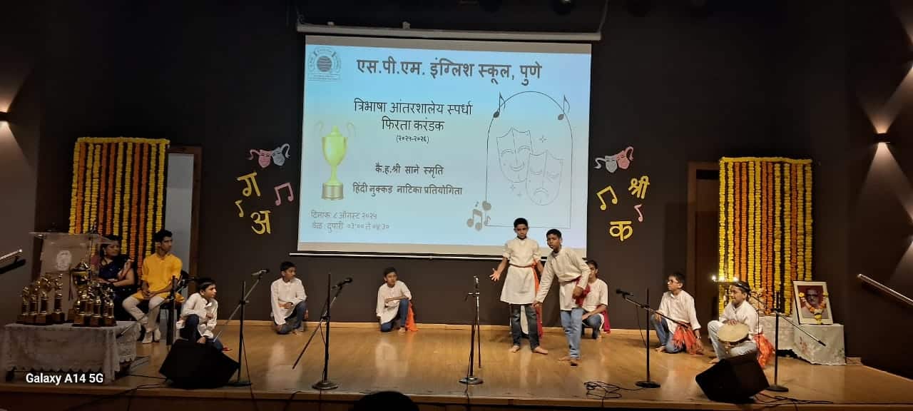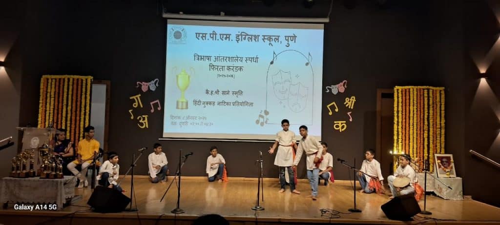 9 A, 9 B. Marathi, Sanskrit and Hindi department participated in the language competition organised by SPM English Medium School “Tribhasha Karandak” and secured the consolation prize for the Hindi Nukkad natak. Well done team !!