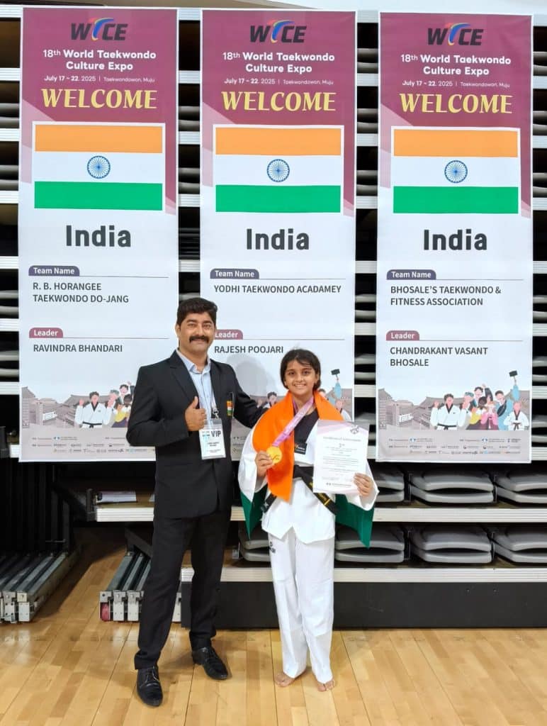 Urja Savadatti from std 7 won Silver medal at World Taekwondo Culture Expo at South Korea in Poomsae presentation. Poomsae, also known as patterns or forms, are choreographed sequences of Taekwondo techniques used for training and competition.