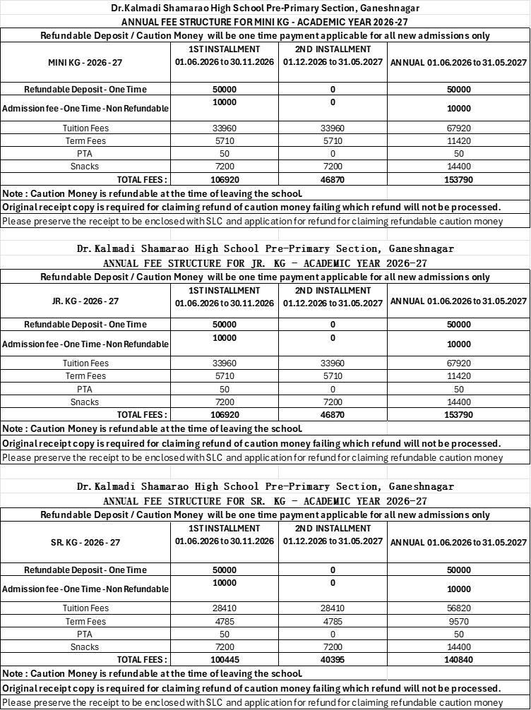 1) 1st term (June to November) fee has to be paid at the time of admission.